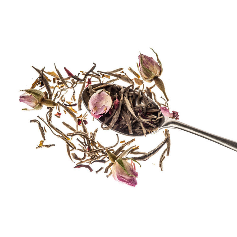Pink Pride is one of our most celebrated and decadent blends and is made up of three ingredients, a stunning Jasmine Silver Needle, pink rose buds and hibiscus.